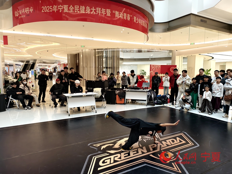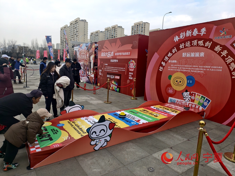 在趣味體育運動會區和體育賽事活動區,掰手腕、旱地冰壺、投壺、踢毽子、立定跳遠等趣味體育項目,吸引不少市民們觀看。同時,還舉行了2025年寧夏全民健身大拜年暨“舞動青春”青少年街舞聯賽、“我是球王”乒乓球邀請賽以及“悠壹杯”5人制籃球聯賽等賽事。