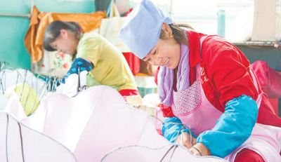 寧夏隆德縣村民制作花燈。李 玉攝