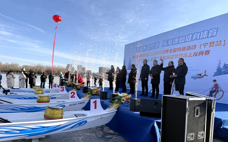 寧夏回族自治區殘聯黨組成員、副理事長丁芳說:“殘疾人體育不僅是競技的突破,更是生命的重塑?!睂幭那擅畹貙⒈淆堉圪惻c黃河文化深度融合,以冰雪為舞臺,以龍舟為紐帶,讓大家在同場揮釬破冰中,奏響新時代的“黃河大合唱”。