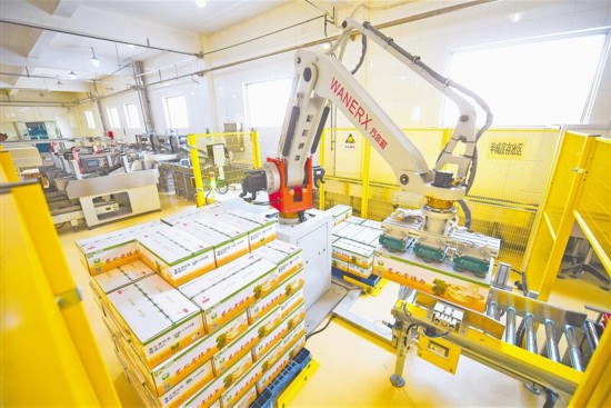 2月19日,寧夏塞北雪面粉有限公司生產車間,一箱箱掛面被機械臂整齊擺放在托盤上。目前,寧夏各類生產企業搶抓開年有利時機,開足馬力忙生產、趕訂單、拓市場,奮力沖刺首季開門紅。