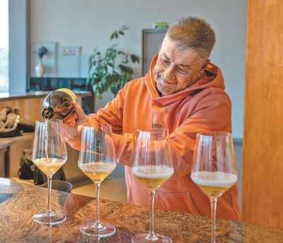 “除了葡萄酒外,我們還不斷拓展釀酒種類。這兩款酒是由我們員工自家種植的大米和蘋果釀制的?!奔贸鰞善烤谱院赖亟榻B道,“它們在市場上很受歡迎,農產品附加值提高了,員工們的收入更多了,真正實現了產業與生活的緊密結合?!?/strong>