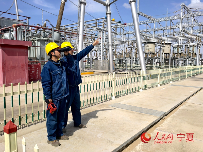國網寧夏超高壓公司工作人員正在進行變電站巡視檢查。人民網記者 梁宏鑫攝
