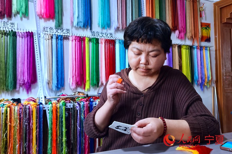 王海娟在刺繡。人民網記者 穆國虎攝