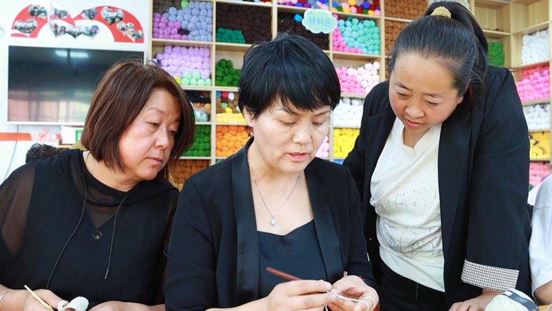 高廣娟(左二)指導婦女做針織產品。固原市原州區融媒體中心供圖