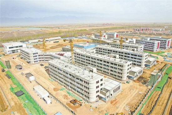 4月10日,在銀川市閱海灣高級中學項目建設現場,一棟棟設計精美的教學樓和宿舍樓已初現雛形。該項目位于銀川市金鳳區親水大街以東、閱海路以南、閱北五路以西,總占地面積161.4畝。學校設計有60個教學班和340間宿舍,能夠提供3000個高中學位,今秋將首批招錄1000名高中一年級學生。 記者 左鳴遠 攝