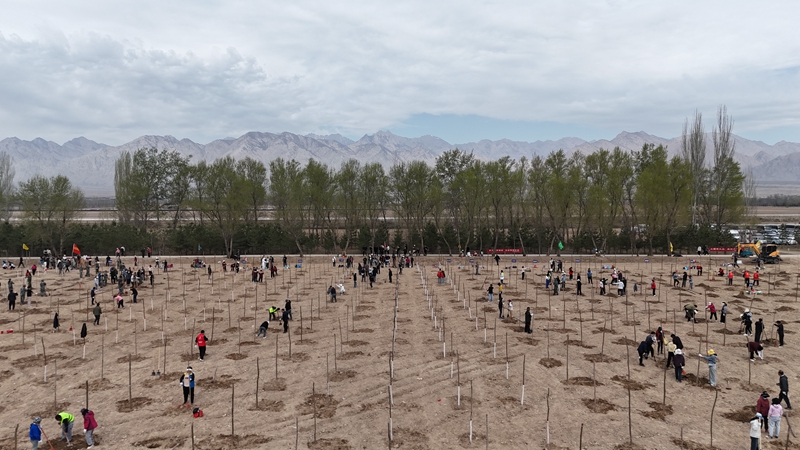 “今天我們組織全縣各部門2000名干部職工,在3個植樹點參加義務植樹活動,共栽植刺槐和榆樹共5300余株,新植80畝、補植60畝,為賀蘭生態文明建設再添新綠?!辟R蘭縣自然資源局工作人員介紹。