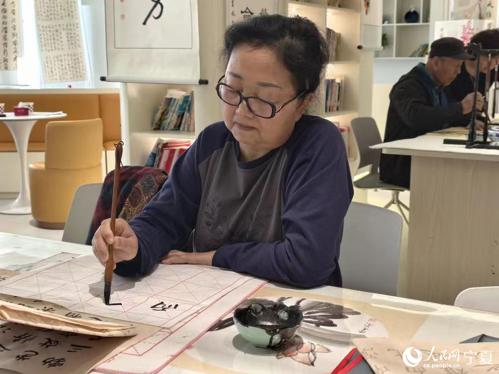 社區居民在綜合鄰里中心練寫毛筆字。人民網記者 梁宏鑫攝