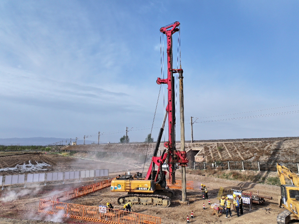 寶中鐵路平涼至中衛段擴能改造工程首根樁基開鉆