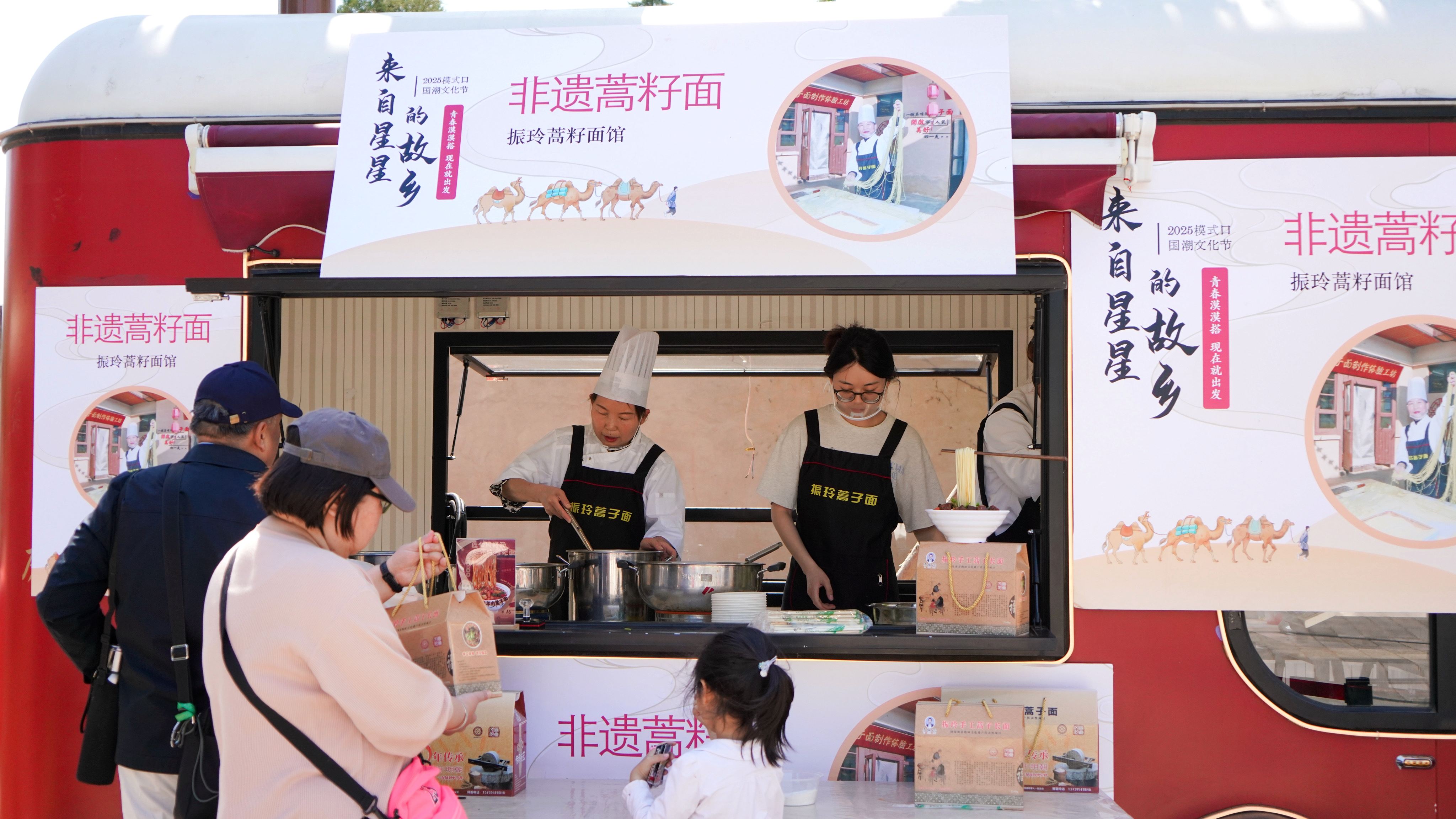 駝鈴聲里的非遺絕技、黃沙淬煉的風味美食、塞上江南的壯美畫卷,在這條千年商道上交織成絢麗的煙火,瞬間點燃京城游客的熱情。吆喝聲、歡笑聲與鼓樂此起彼伏,人群如潮水般將古街的每個角落都填滿活力。