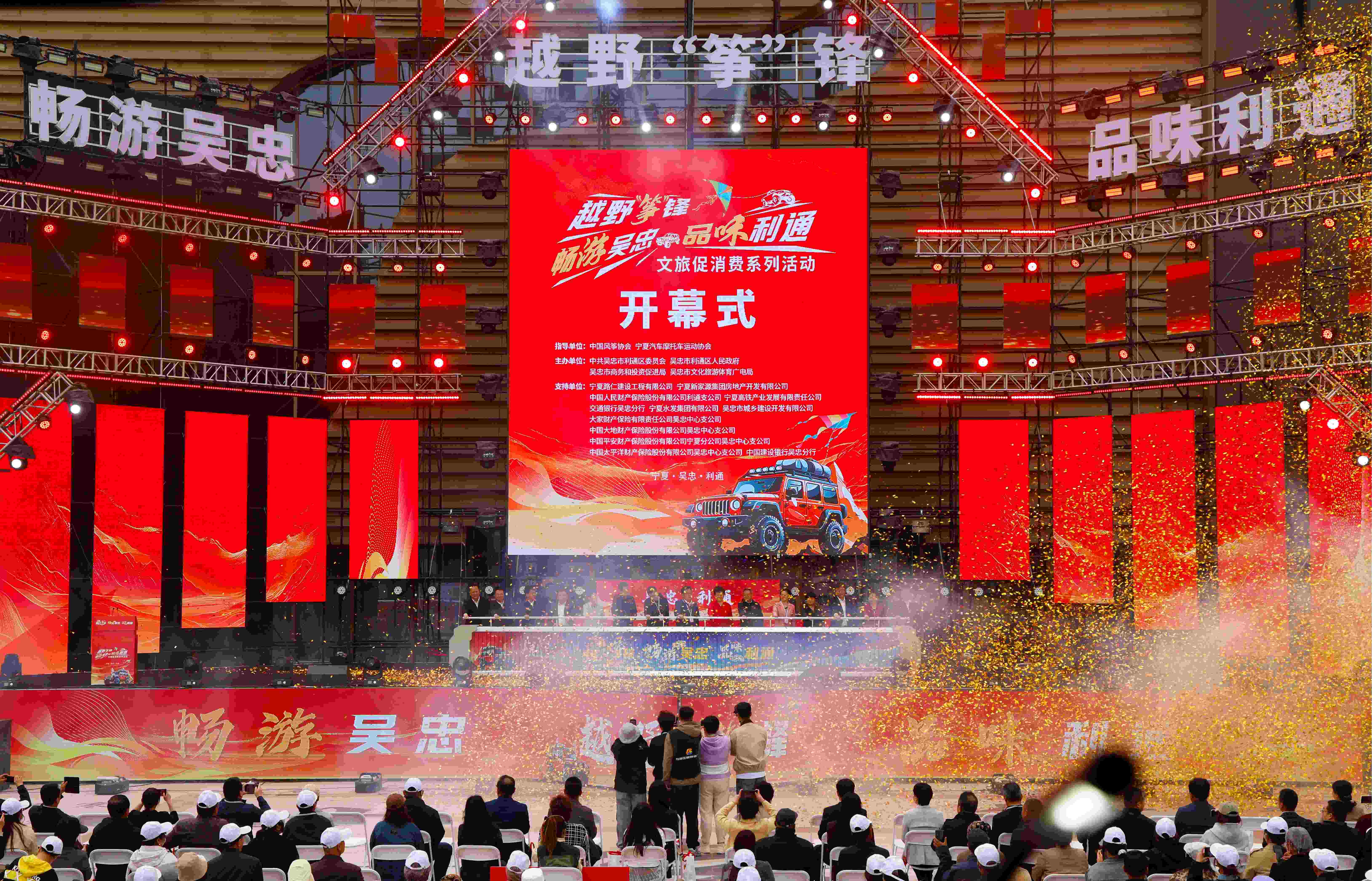 寧夏利通區在此期間舉辦“第二屆從利通出發”越野文化旅游活動,在寧夏吳忠高鐵公園南側精心打造了專業競技場地,設置40萬元獎金,以“風箏嘉年華”首啟蒼穹盛會,讓千盞彩翼共繪盛景;用“從利通出發”越野賽事熱力接棒,讓轟鳴馬達點燃激情,精心為大家獻上一場集“風箏競艷、越野競技、美食競味、演藝競秀”于一體的文化體育盛宴。