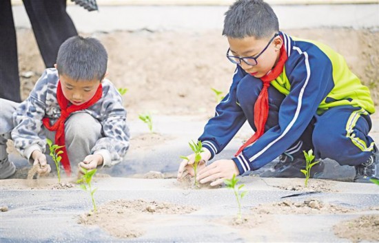 5月7日,在勞動實踐基地,孩子們翻土播種、培苗澆水,種植辣椒、番茄等作物。當天,銀川市興慶區教育局主辦的“春耕傳薪火·秋收潤初心”勞動教育系列活動在唐徠小學通南校區啟動?;顒油ㄟ^農耕文化浸潤、田間實踐體驗等,為轄區中小學生打造了一堂生動有趣的勞動課。