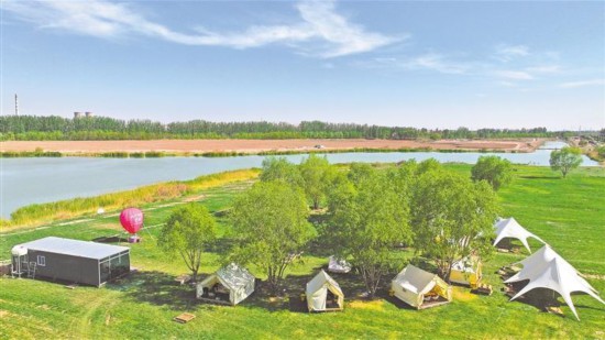 5月13日,市民在銀子湖邊露營。近年來,永寧縣依托銀子湖、西部水系等生態資源,積極開發林間徒步、生態研學等鄉村旅游項目,打造“生態+文旅”融合發展新模式。 記者 何耐江 攝