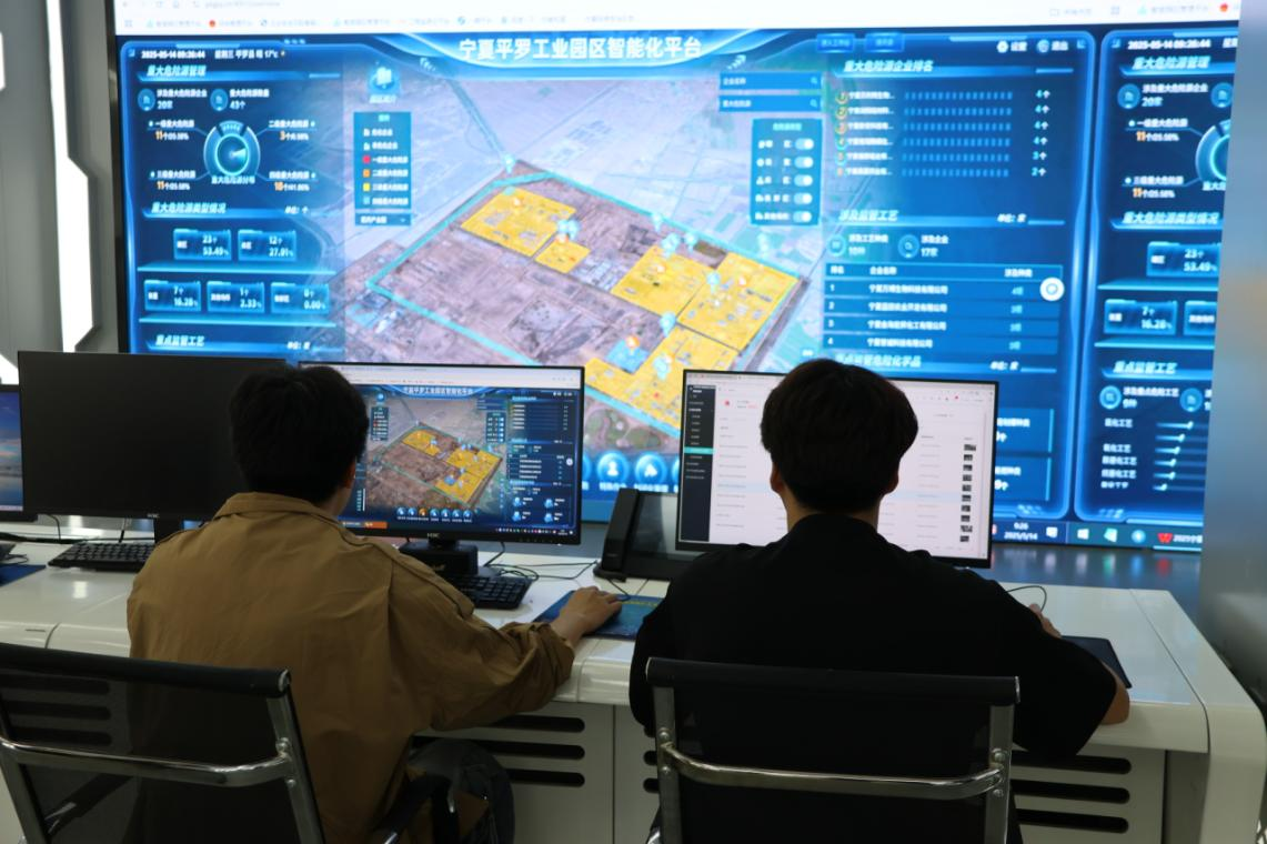 平羅工業園區管委會工作人員使用智能化平臺實時查看企業情況。寧夏移動供圖