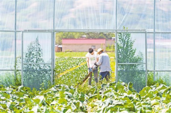 6月11日,西吉縣馬蓮鄉冷涼蔬菜示范基地,前來務工的村民在田間接水管準備澆灌。西吉縣積極發展標準化、規?;錄鍪卟朔N植基地,推動冷涼蔬菜產業優化升級,助力鄉村振興。 記者 陳永峰 實習生 楊愷 攝