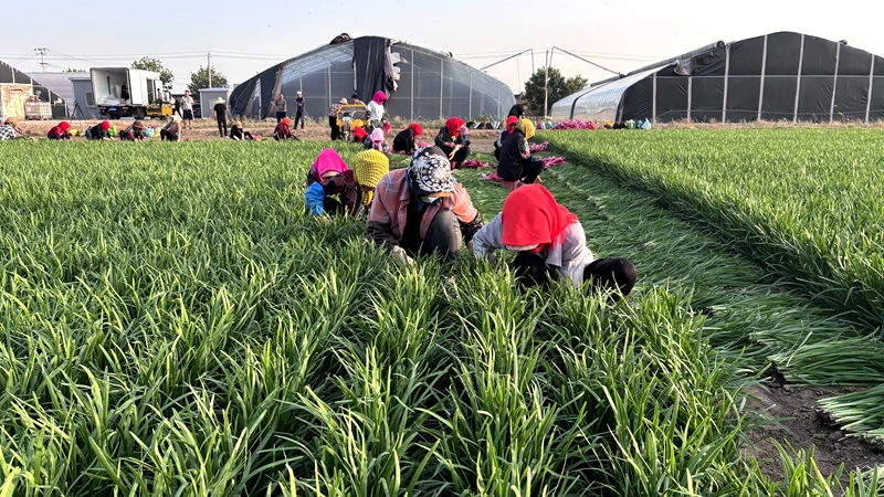 6月15日,在韭菜收割現場,放眼望去,一壟壟韭菜整齊排開,組成一片片綠油油的韭菜田,微風吹過,空氣中還有陣陣韭菜的清香,忙于收割的村民個個臉上洋溢著豐收的喜悅。