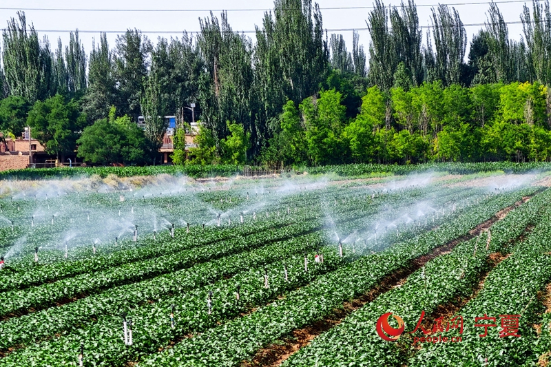 利通區高閘鎮自動化噴灌設施。人民網記者 閻夢婕攝