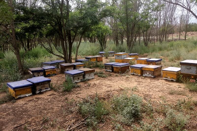 林間的蜜蜂箱。興慶區委宣傳部供圖