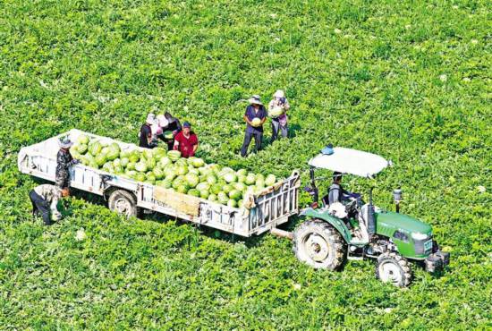西瓜獲豐收,瓜農樂開懷。記者 馬楠 王洋 攝