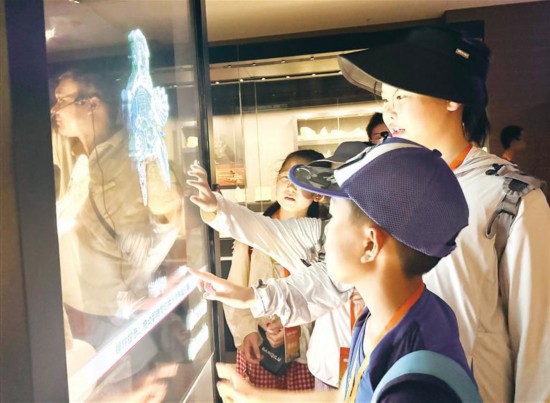 研學學生體驗數字化展柜。 記者 張璞 實習生 杜銀雙 攝