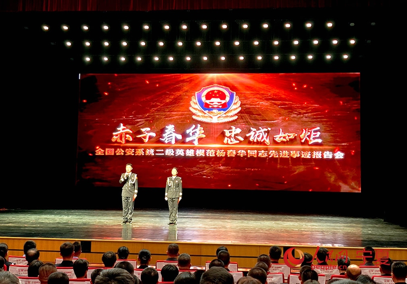 據悉,楊春華生前是銀川市公安局三級高級警長,曾獲全國公安系統二級英雄模范稱號。從警37年來,他矢志不渝踐行“人民公安為人民”,是忠誠踐行訓詞的政績觀典范。報告團成員深情講述了他對黨忠誠、服務人民的先進事跡,青年公安民警和政法系統退役軍人代表分別重溫誓詞,向政法英模致敬。