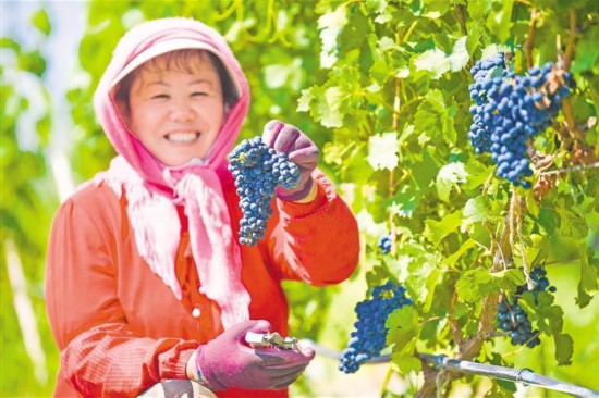 8月19日,在圖蘭朵酒莊的釀酒葡萄種植園,工人剪枝、采摘,忙得不亦樂乎。眼下,釀酒葡萄陸續成熟,賀蘭山東麓迎來采摘季。截至2024年,寧夏釀酒葡萄種植基地開發面積超60萬畝,占全國釀酒葡萄種植面積的近40%,有酒企261家(其中已建成酒莊130家),葡萄酒年灌裝量1.4億瓶,產區葡萄酒遠銷40多個國家和地區。 記者 馬楠 王洋 實習生 宋佳敏 攝