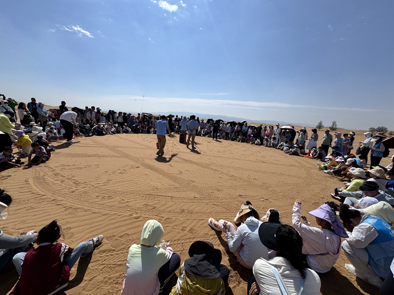 據悉,參與此次活動的家庭還走進沙坡頭景區,參觀沙漠博物館、學習扎設麥草方格治沙技術,開展沙漠生態研學,并體驗羊皮筏子漂流、黃河飛索、激情滑沙、沙海乘駝等各類沙漠游玩項目,讓孩子們在暑期的尾聲收獲一場充滿探索、歡樂和藝術氣息的成長之旅。