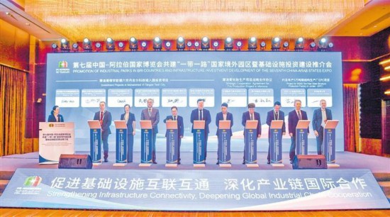 8月28日,在第七屆中阿博覽會共建“一帶一路”國家境外園區暨基礎設施投資建設推介會現場,共達成國家境外園區建設和基礎設施投資建設領域經貿合作項目13個,簽約金額逾118億元。