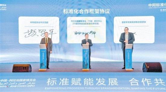 據了解,2024年,中阿貿易額已達4074億美元。隨著中阿經貿合作全面深入發展,標準作為橋梁和紐帶的重要作用也日益凸顯。此次活動中,阿拉伯國家標準化(寧夏)研究中心與亞歐非貿易投資聯合促進會、中阿經貿合作示范園三方簽署標準化合作協議,將進一步加強對阿拉伯國家標準化領域的研究,助力中阿在技術法規、標準互認、質量認證等領域的對接,加速中國標準“走出去”。