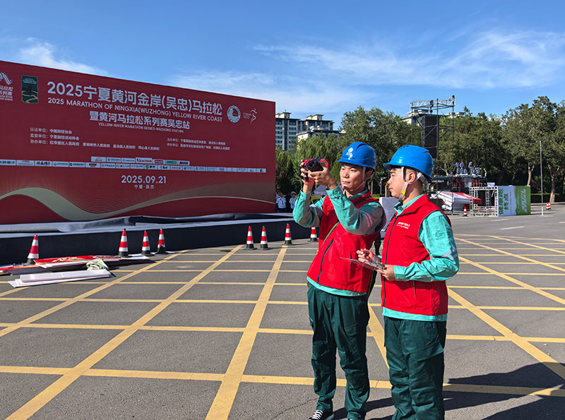 從9月初開始,國網吳忠供電組織共產黨員服務隊根據馬拉松賽場設置和用電負荷情況,提前對吳忠市廣場服務中心、文化館、博物館等7個賽事所涉重要場所低壓配電室及設備開展用戶側安全檢查,現場發放隱患告知書及整改措施清單,發現消除隱患5處,保證用電安全。同時針對賽事起點終點、安檢門、補給站等重要場所開展全覆蓋式電力設施用電檢查,對沿線2條10千伏線路、3臺配電變壓器等重要設備進行3輪次負荷監測與紅外測溫,及時整改安全缺陷7處,確保賽事用電萬無一失。
