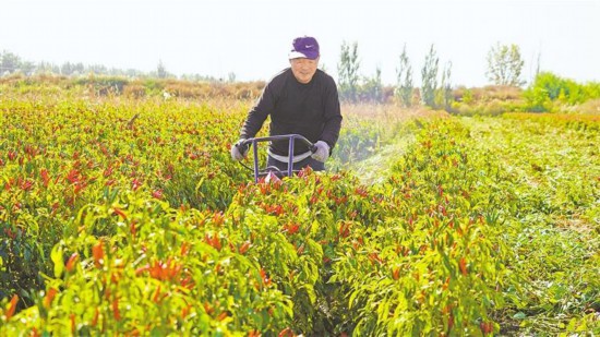去年,王太村試種朝天椒200余畝,通過訂單式生產,當年村集體經濟增收70萬元。嘗到甜頭后,今年王太村實施聯農帶農機制,種植辣椒近千畝。王太村黨支部書記于建軍介紹,近期,村集體召集本村70多人進行采收,預估每畝可采鮮辣椒1500公斤,通過企業烘干后每畝得到干辣椒350公斤至400公斤,朝天椒預計產值可達400萬元。