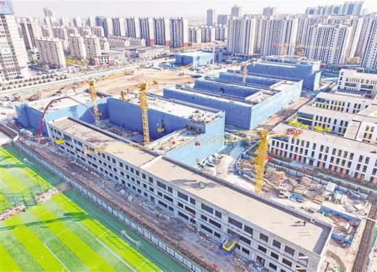 11月3日,銀川市金鳳區第二十八小學(九年一貫制學校)建設項目現場,一座座教學樓拔地而起。該項目預計2026年7月完工?!笆奈濉逼陂g,寧夏共辦理擴大學位供給、做好高校畢業生就業等民生實事6類21件,新增學前教育學位3萬個、義務教育學位9.25萬個、普通高中學位2.52萬個。記者 馬楠 攝