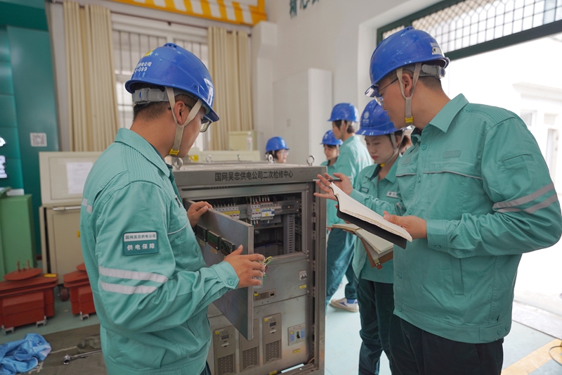 該公司工作人員正在調試一體化電源系統轉接柜。國網吳忠供電公司供圖