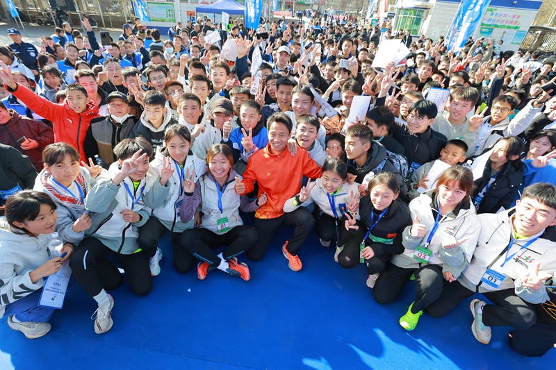 分享會后,“何以爭鋒 杰耀平羅”平羅縣中學生越野跑活動激情開賽。何杰為活動鳴槍發令,500多名學子踏上6.5公里賽道,用奔跑踐行“傳承冠軍精神·奔跑逐夢青春”的主題。