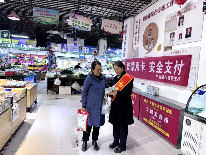 近日,中國銀行西夏支行福寧城支行走進貿易巷市場,開展“智慧用卡、安全支付”主題消保宣傳。支行員工在攤位間穿梭,向商戶和過往市民發放宣傳手冊,講解銀行卡盜刷防范、二維碼支付安全、電信詐騙識別等實用知識。此次活動讓“安全支付”理念深入民心,獲得市場商戶和市民的一致好評,為營造安全便捷的支付環境筑牢防線。