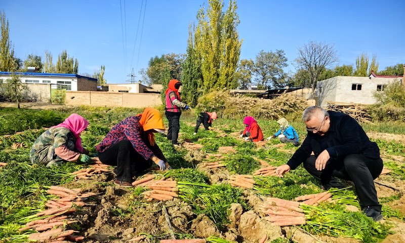 利通區馬蓮渠鄉漢北堡村駐村第一書記助農豐收。利通區委宣傳部供圖