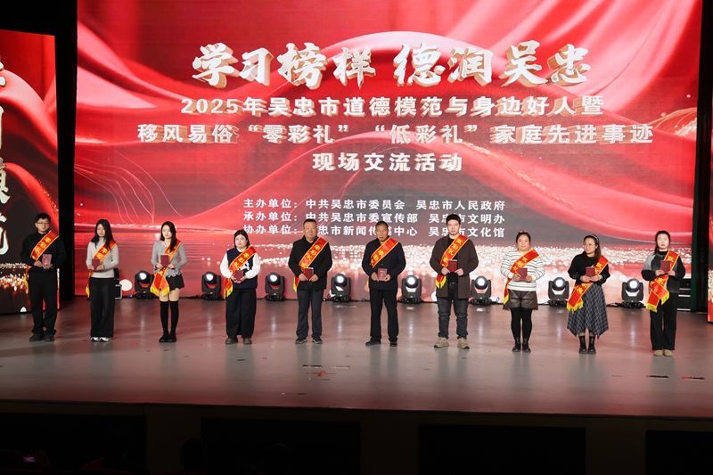 人民網銀川12月4日電(記者 李甜甜)12月3日,“學習榜樣 德潤吳忠”2025年道德模范與身邊好人暨移風易俗“零彩禮”“低彩禮”家庭先進事跡現場交流活動在寧夏吳忠市文化館舉辦?;顒臃譃樾⒗蠍塾H篇、助人為樂篇、見義勇為篇、敬業奉獻篇、誠實守信篇和移風易俗篇,用一個個生動的案例,展現道德力量。